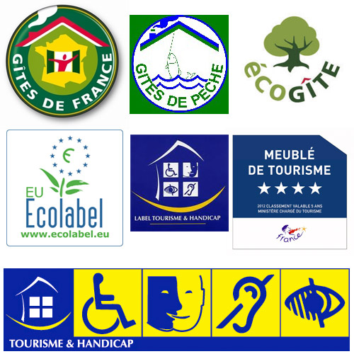 - Gîtes de France : 4 épis, écogîte, gîte de pêche